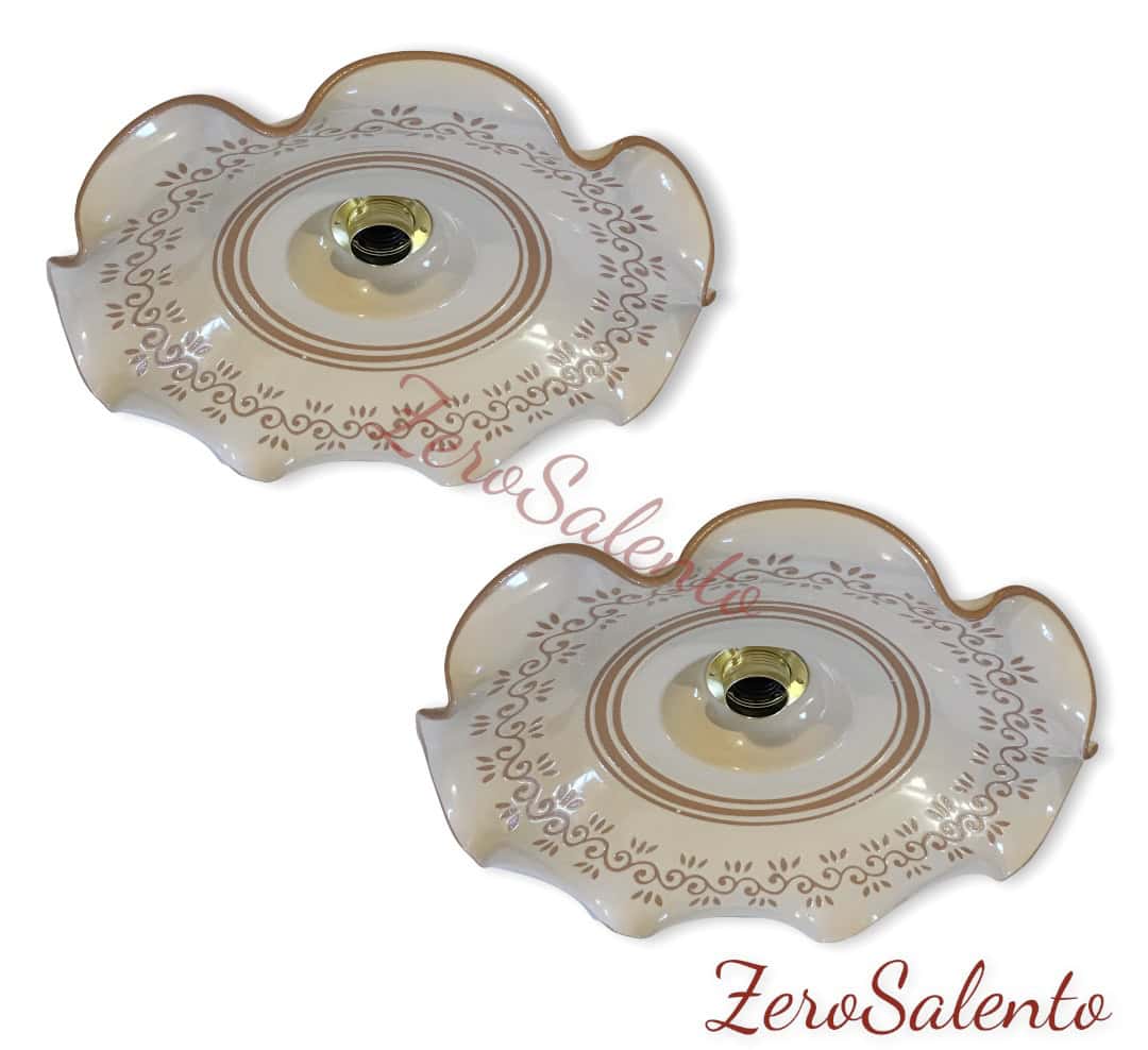 Lampadario in terracotta con bordi ondulati con disegno inciso a mano nello smalto