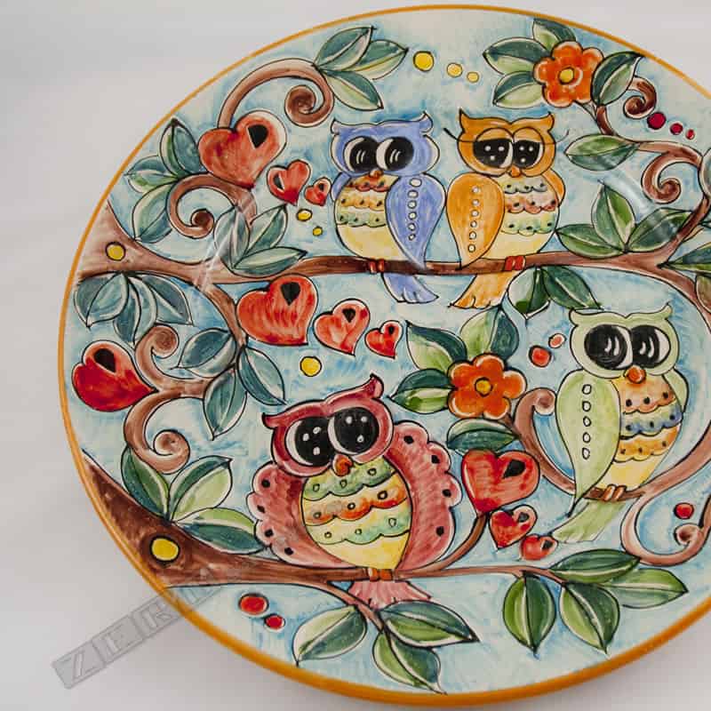 - Piatto Piano in Terracotta con motivo Le Civette dipinto a mano – nato dalla tradizione e cultura salentina.