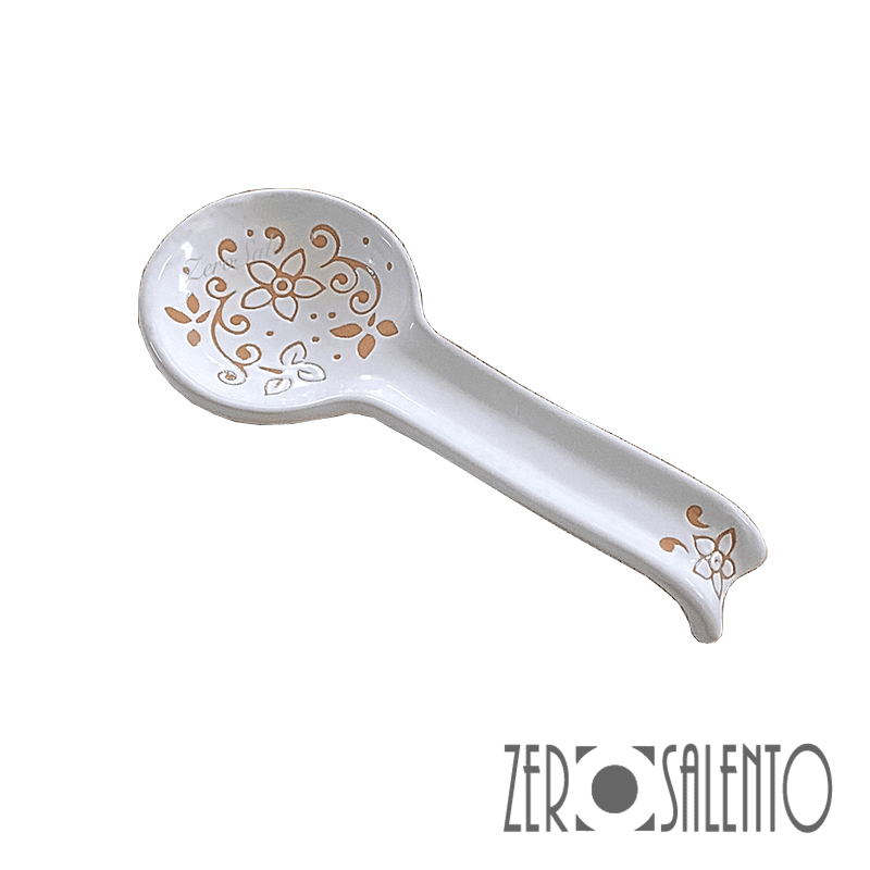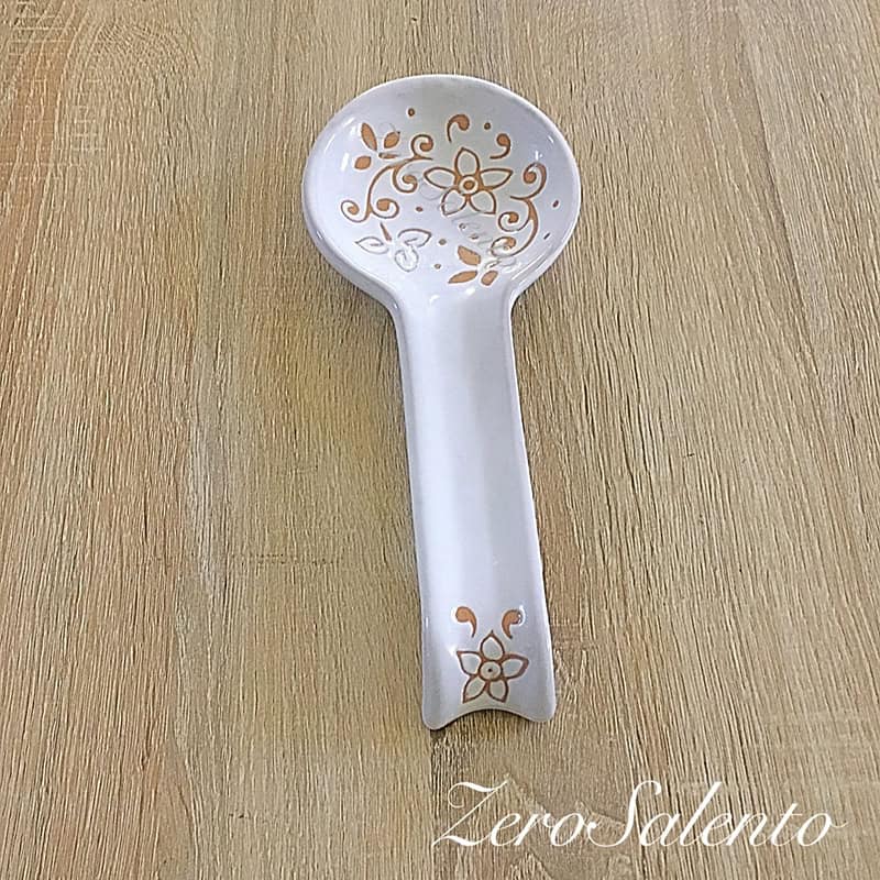 Posa Cucchiaio in Terracotta Ceramica bianca decoro a incisione